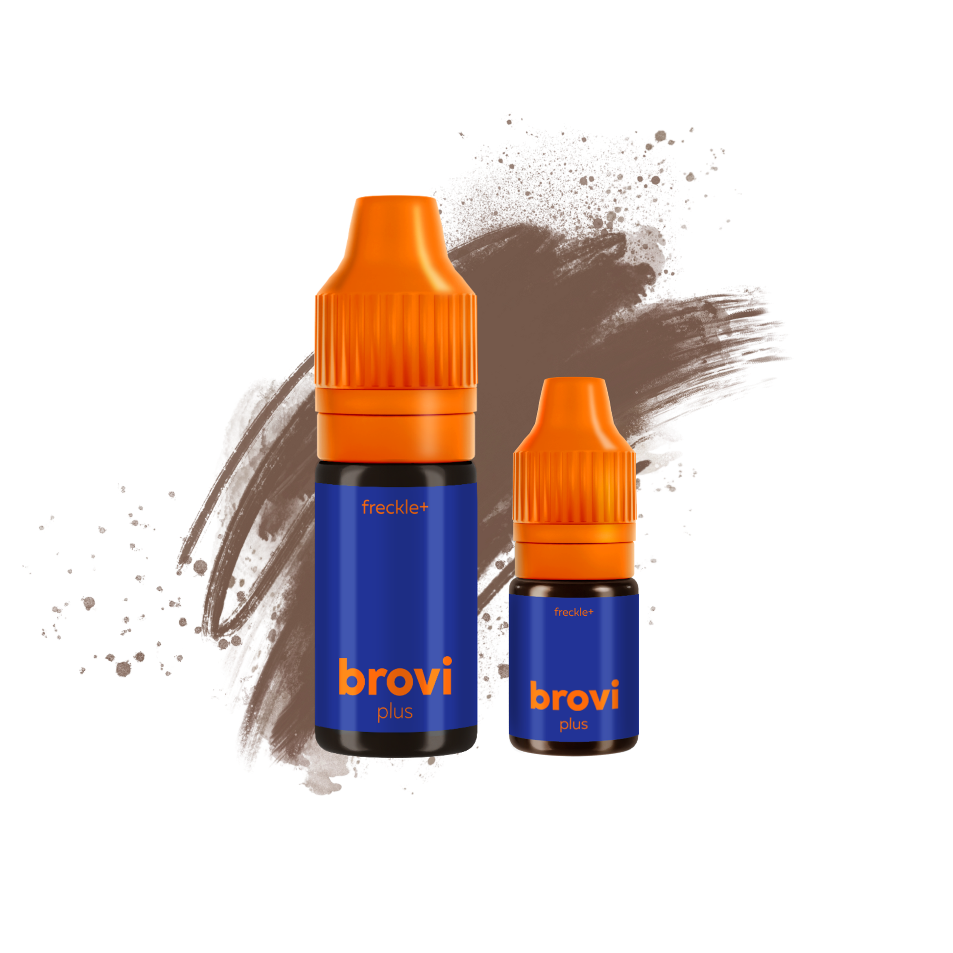 For example, you can add 7 drops of regular Roasted Chestnut to 3 drops of Roasted Chestnut+ (you may adjust the proportions depending on the desired saturation). You can mix the opposite colours from the BROVI+ line. For example, Grey Harbour + Bitter Chocolate. When mixing these colours, you will receive a neutral brown colour that will look natural when healed. There is no sense in mixing Roasted Chestnut + Bitter Chocolate because both colours have a warm orange base. Also, you shouldn’t mix any colour from BROVI+ line with Freckle+ or add the corrector, because this line is already very warm.